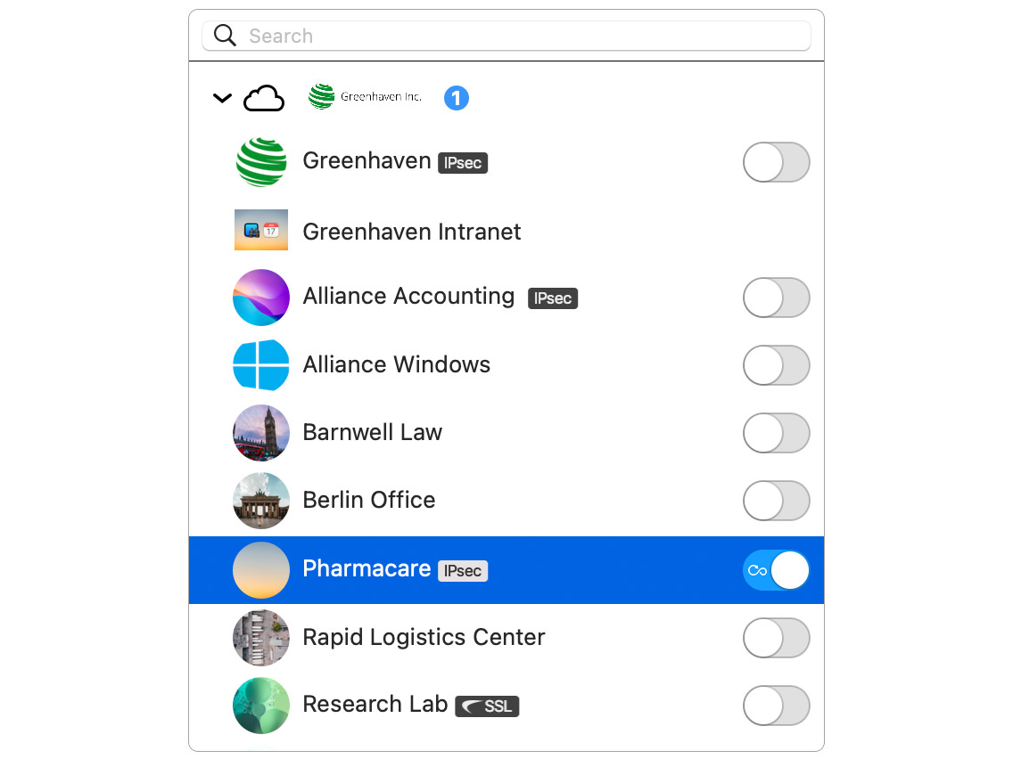 | Multi-VPN support | Connect to multiple VPNs at the same time (Pro version, Mac only). |