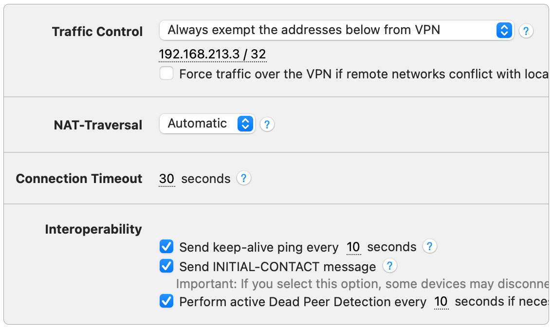 | Supported VPN configurations | Host to Network and Host to Everywhere (encrypt all traffic) |