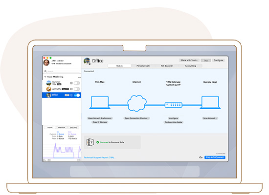 If you need help connecting to your Mac VPN, our team of VPN experts is ready to assist you. Whether you use the built-in troubleshooting tools or reach out to us directly, VPN Tracker will help you get set up, stay connected, and keep your Mac VPN running smoothly. |