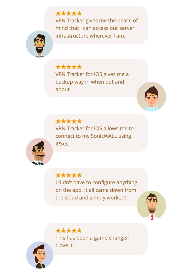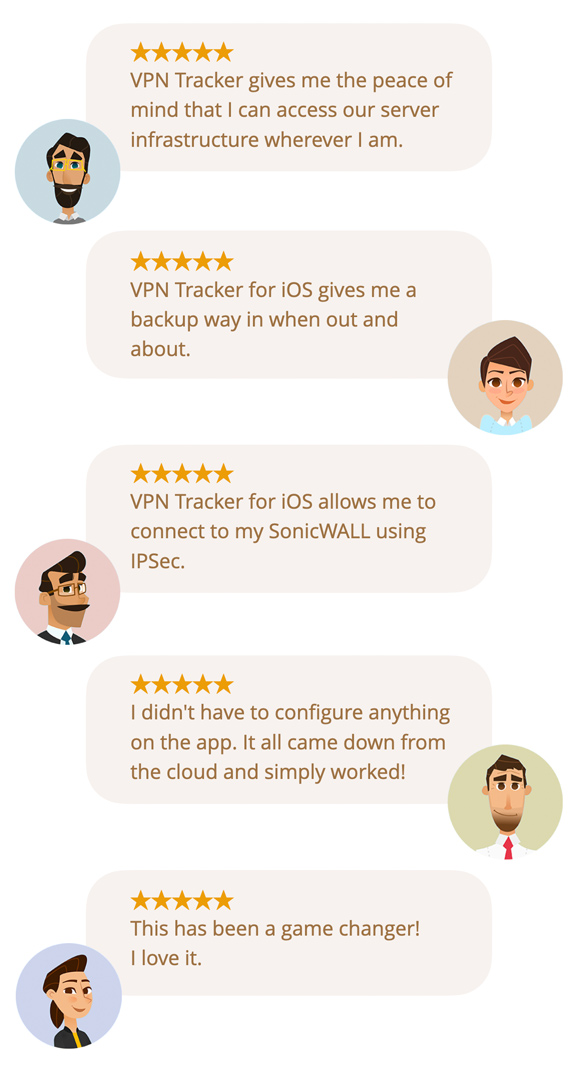 Our VPN Tracker experts are here to assist you with setting up secure Mac VPN connections, answering configuration or security questions, and helping your team roll out connections easily - so you can stay focused on what matters.