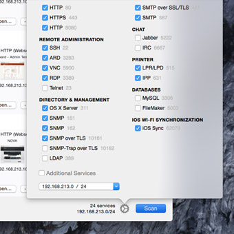 VPN Tracker’s built-in VPN Scanner for Mac automatically scans VPN networks for the most frequently used services and can be customized to check other ports. Instantly find file shares, remote administration tools, screen sharing, databases, as well as web and mail servers on your remote network.